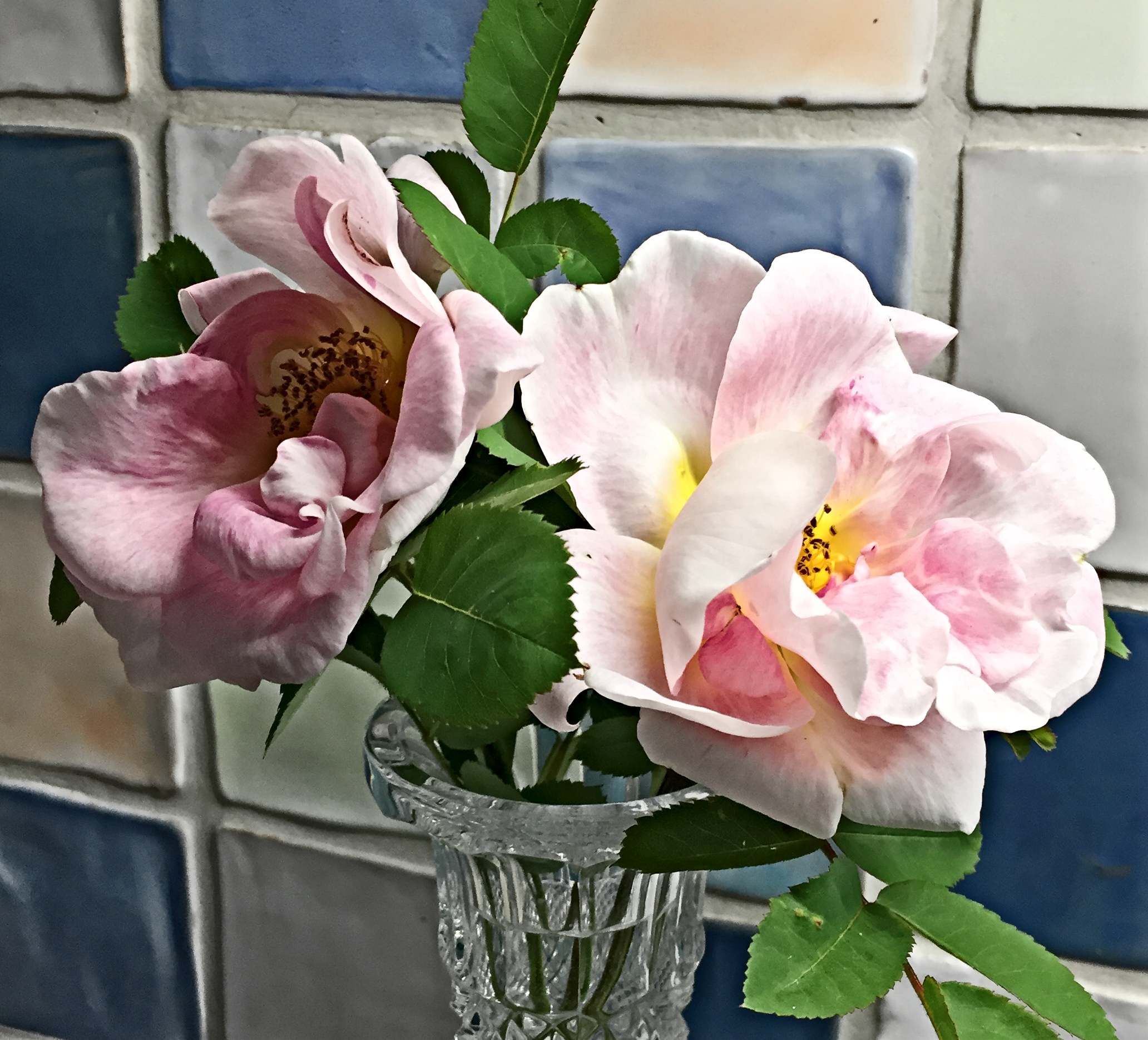 Plockade några rosor från min nya trädgård, ‘Nevada’. Stora kraftiga buskar, men tyvärr, de kommer att grävas upp. Står fel och tar för mycket plats. Det blir blomfattigt utan rosor, så någon får det bli framöver, men det är inte det första jag planerar in. Först kommer de små träden. En trädgård, hur liten den än är, kan inte sakna träd. Och jag går in för tre ätliga: persika, aprikos och plommon.