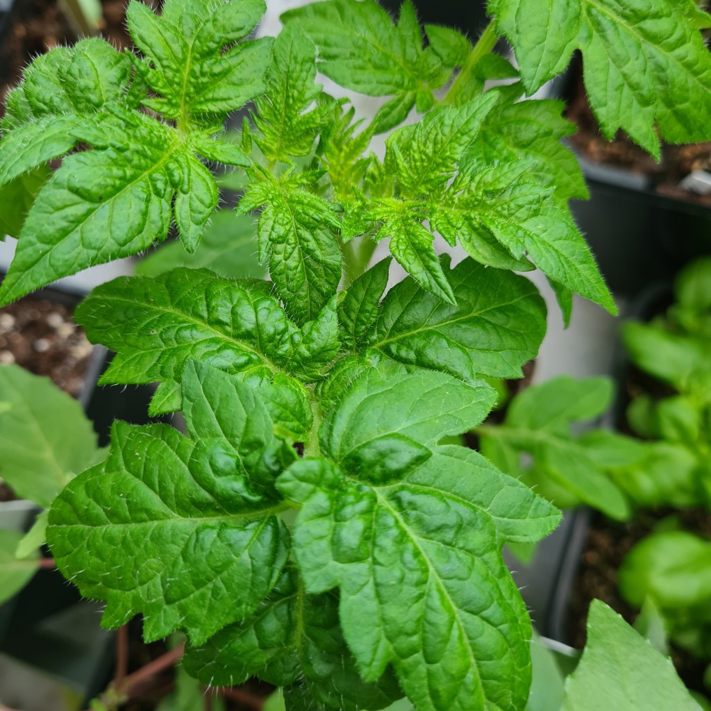 Även om jag inte är så förtjust i att odla busktomater (tar för stor plats av marken i mina lilla trädgård) har jag ändå sått tre sorter! ’Geranium Kiss’ kunde jag inte låta bli för att den är vacker och ger tomater som är lite störe än körsbär. ’Vilma’ och ’Maskotka’ åkte med av bara farten. Både har växtkraft och ger tonmater tidigt. Jag gråter inte om jag gör mig av med plantorna tidigt.